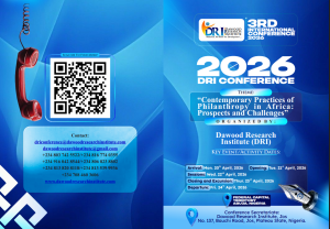 DRI’s 1st international conference was held in April 2023 in collaboration with the Faculty of Arts, University of Jos, Nigeria. The conference brought together scholars and practitioners from Nigeria and different African countries such as Kenya, Ghana, Sudan, Niger Republic, etc. The 2nd international conference organized by DRI was held in February 2024 at the Dangote Business School, Bayero University Kano, Nigeria in collaboration the International Institute of Islamic Banking and Finance, Bayero University Kano and with six universities in and outside Nigeria. These universities include Indiana University, USA, University of Jos, Nigeria, Al-Istiqama University, Sumaila, Kano Nigeria, Sule Lamido University, Kafin Hausa, Jigawa Nigeria, Khalifa Isyaku Rabiu University, Kano Nigeria, and Umaru Musa Yaradua University, Katsina, Nigeria.